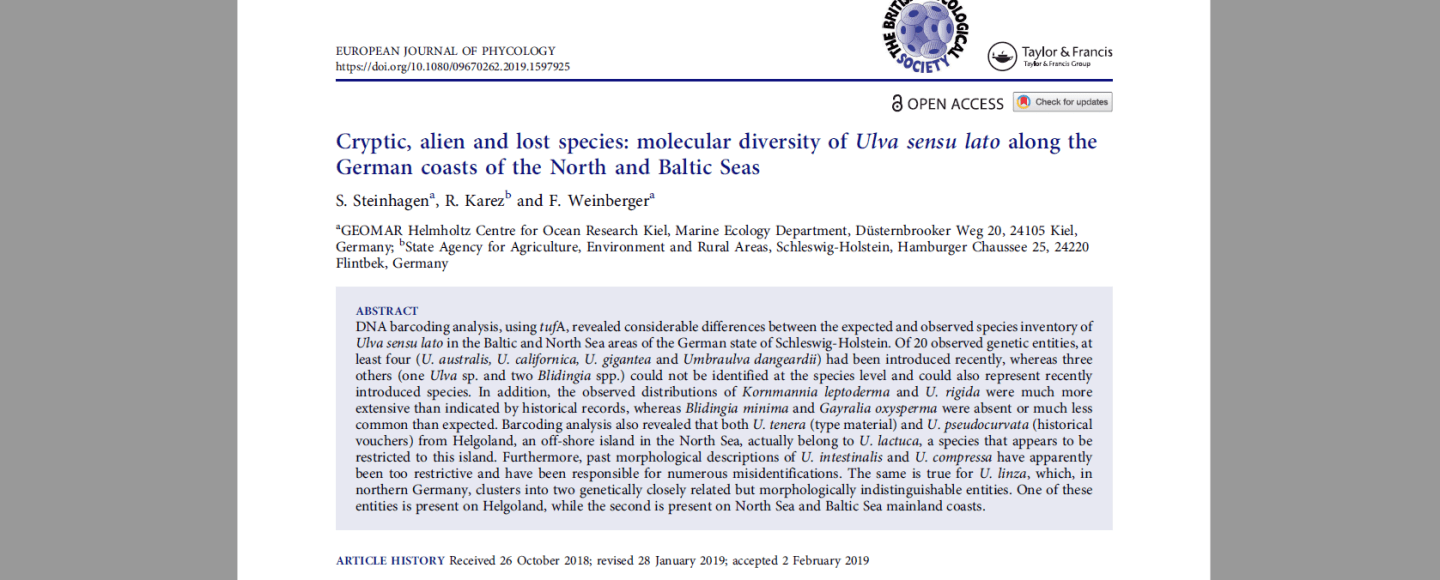 Our new article “Cryptic, alien and lost species: molecular diversity of Ulva sensu lato along the German coasts of the North and Baltic Seas” is now published in the European Journal of Phycology.