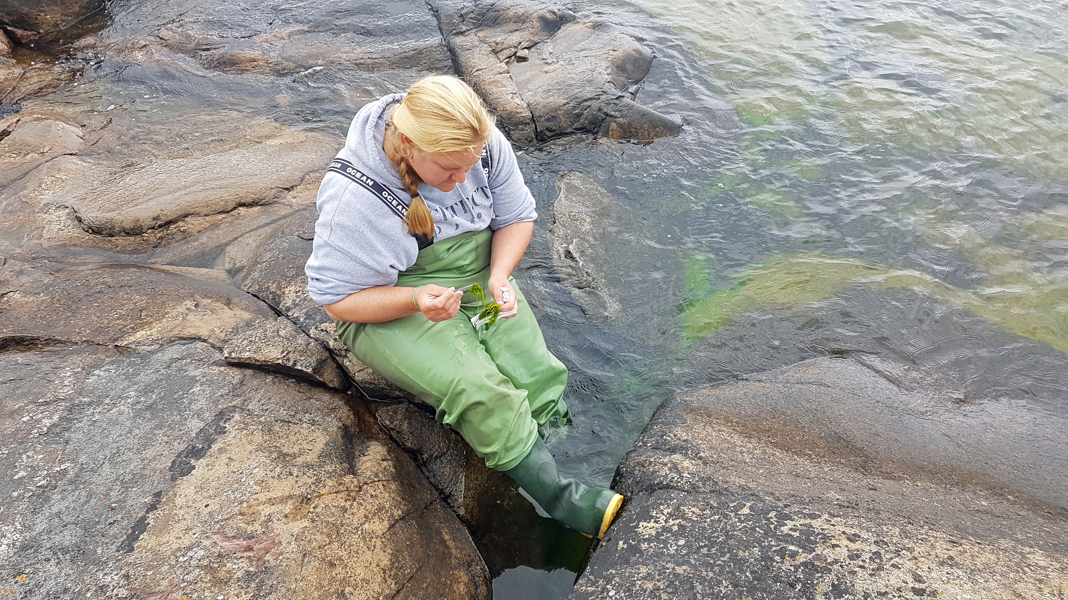 To screen for potential candidates for our seaweed cultivation at the Sven Lovén Centre for Marine infrastructure of the University of Gothenburg on the island Tjärnö, we are collecting green seaweeds all along the Swedish west coast.