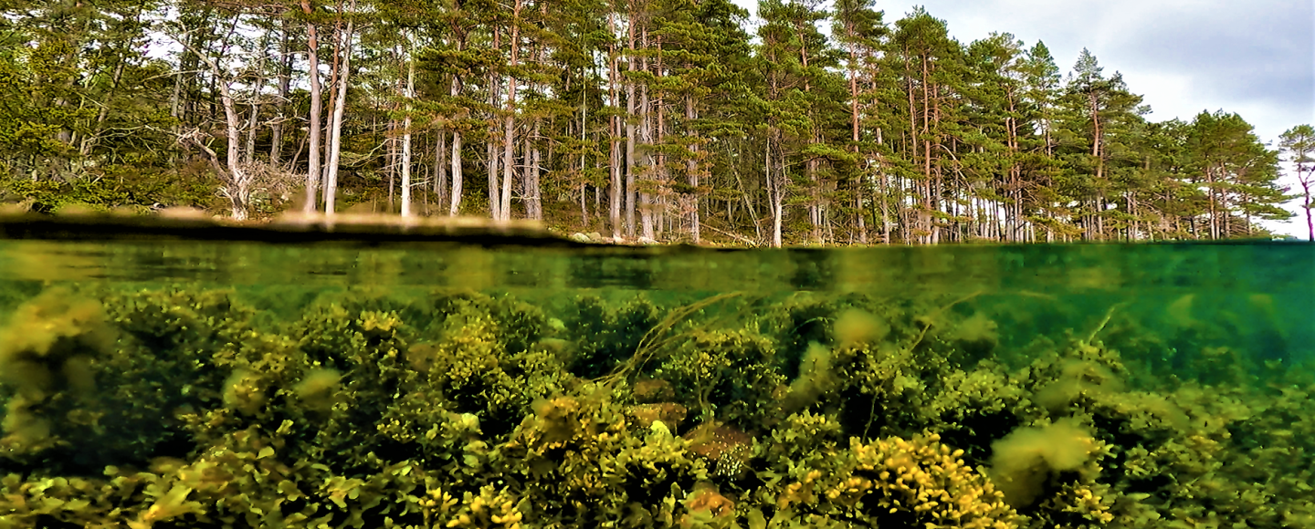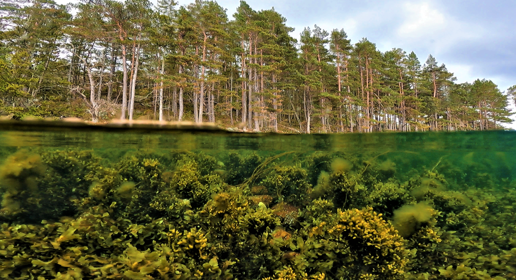 Forestal – This image displays the stunning beauty of the typical Swedish flora above and below the surface. It gives a complementary picture of the oceanic forests dominated by Fucus spp. and the dense terrestrial Pine forests. Both ecosystems not only contribute important oxygen to the atmosphere, but also provide invaluable habitats for vertebrates, invertebrates and millions of microorganisms. The picture was taken at a shallow beach located in the Koster archipelago, Sweden in May 2021 using a GoPro HERO9. The water is about a meter deep.