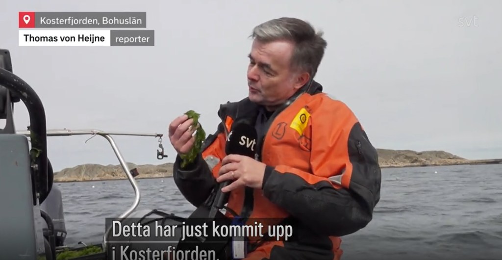 We have been visited by the journalists and film makers Thomas von Heijne and Thomas Svensson from Swedens biggest TV channel, SVT1 during our seaweed harvest of Ulva. Together we talked about the uniqueness of our sea-based Ulva cultivation in Scandinavia and the importance of developing future food sources for a growing world population.