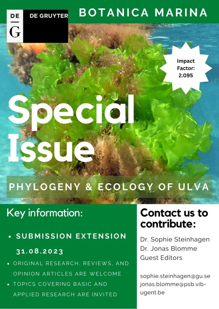 We are pleased to welcome contributions to a special issue on “Phylogeny and Ecology of Ulva” in Botanica Marina. Are you doing research on the Ulva system and want to contribute to this article collection with an original research article, review article, or short communication?